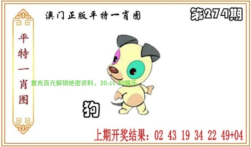 274期:绝杀三肖【猪兔猴】开:狗44准 |