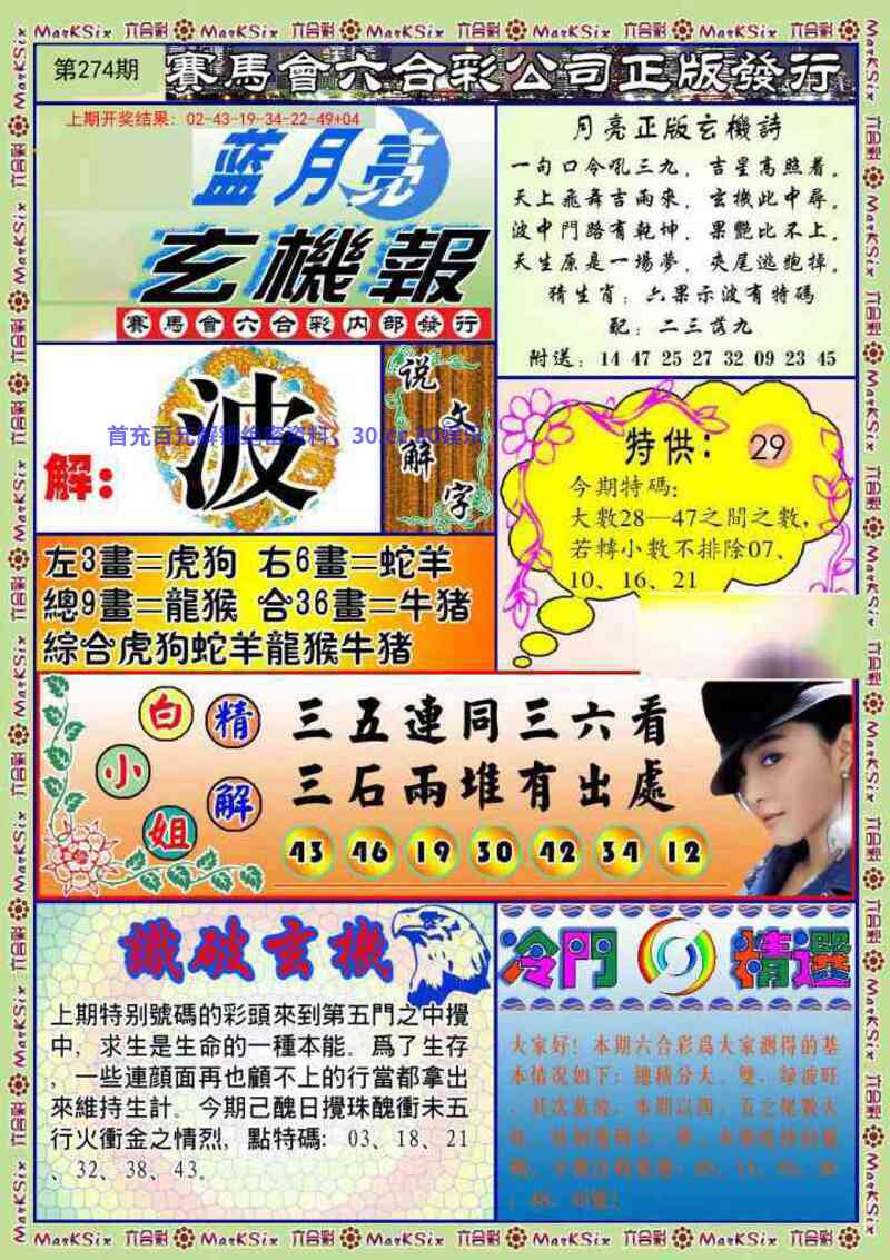 274期:左右三肖❉左肖+狗马羊❉开:狗44准 |
